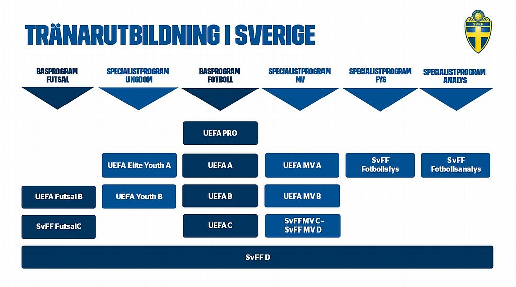 Spelarutbildningsplanen rekommenderar denna utbildning från och med spelform 7 mot 7 (10-12 åringar).
